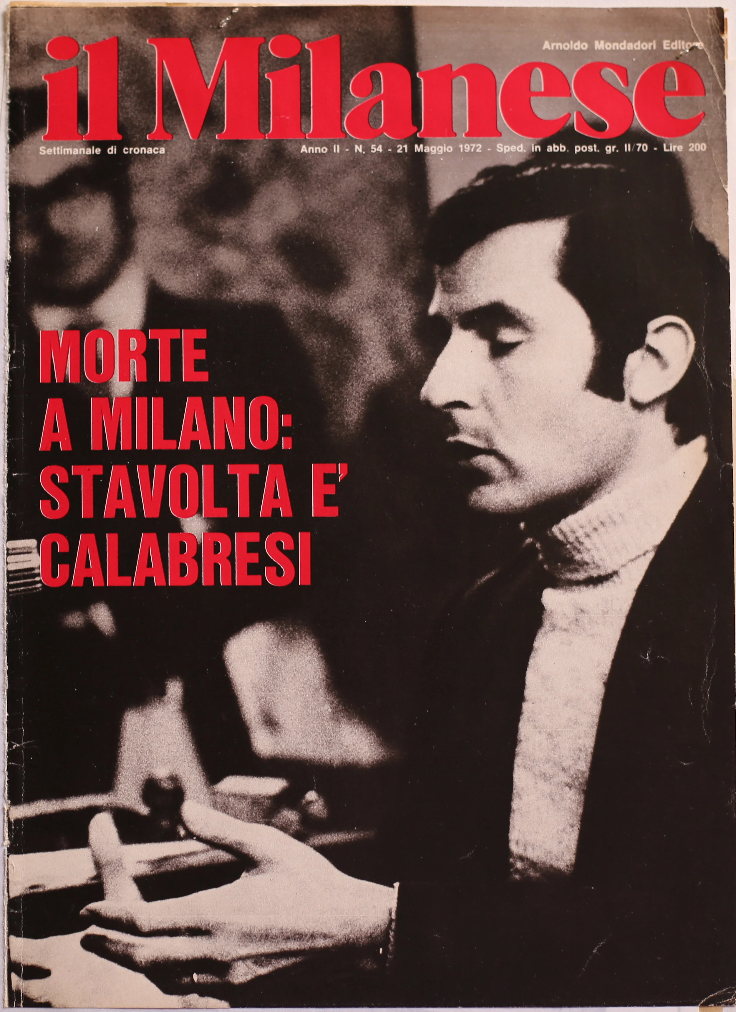 Luigi Calabresi durante il processo 'Calabresi-Lotta Continua'. Foto di Carla Cerati, prima pagina de il Milanese (21 maggio, 1972).